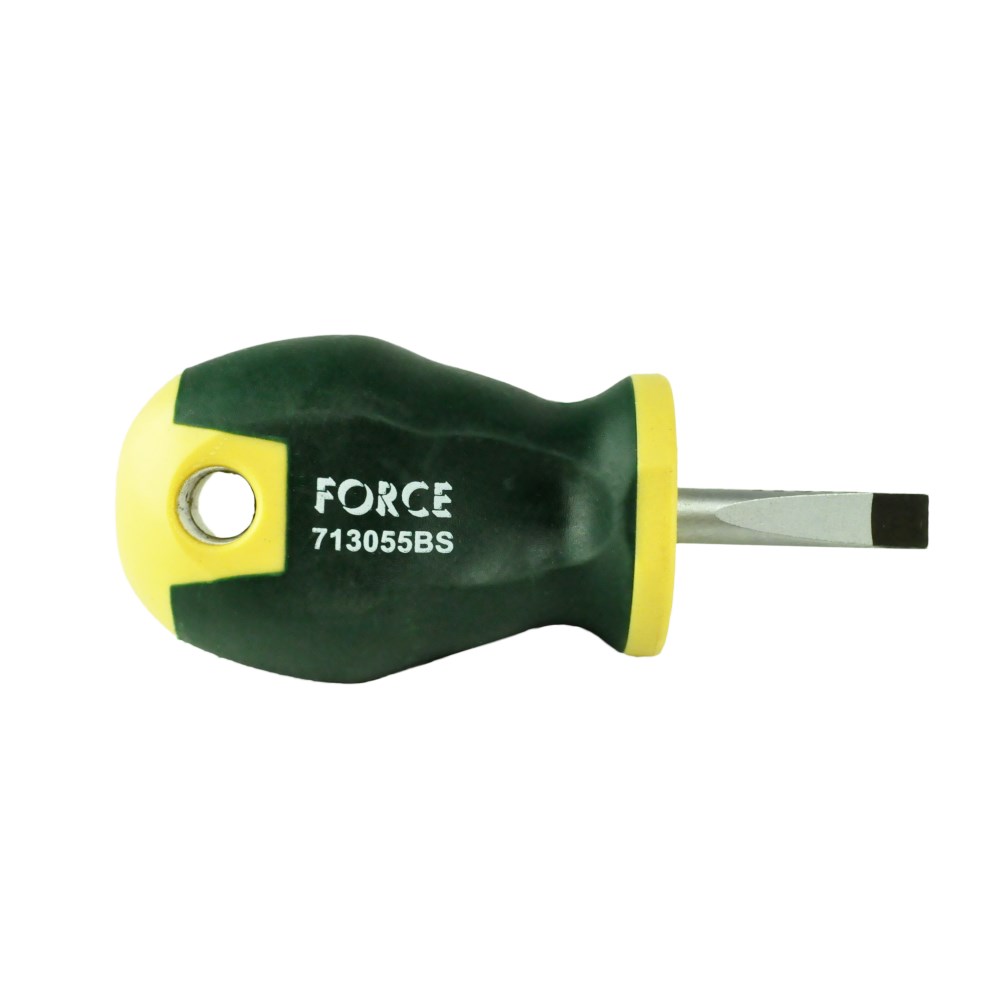 Short screwdriver with size (-) 1x5.5mm widely used by professionals who work in places with limited space, in mechanical plants etc.. Material Cr-V, with the top magnet. High resistance against corrosion. Rubber gloves while working quite and comfortable.