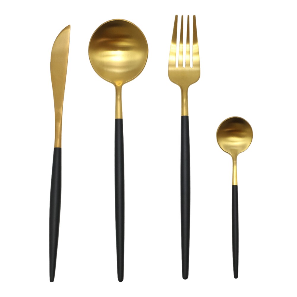 Service set spoon/fork (PK 4), stainless, black/gold, 22/21/13/21cm