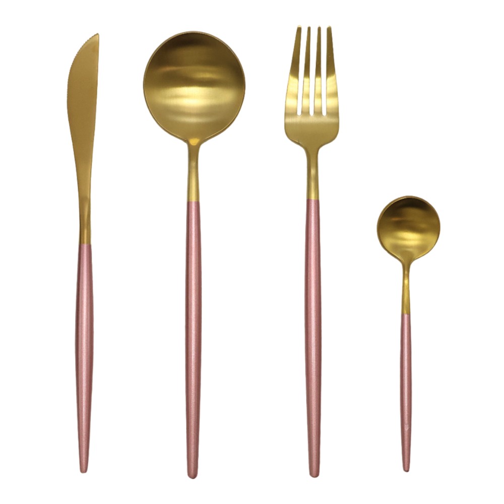 Service set spoon/fork (PK 4), stainless, pink/gold, 22/21/13/21cm