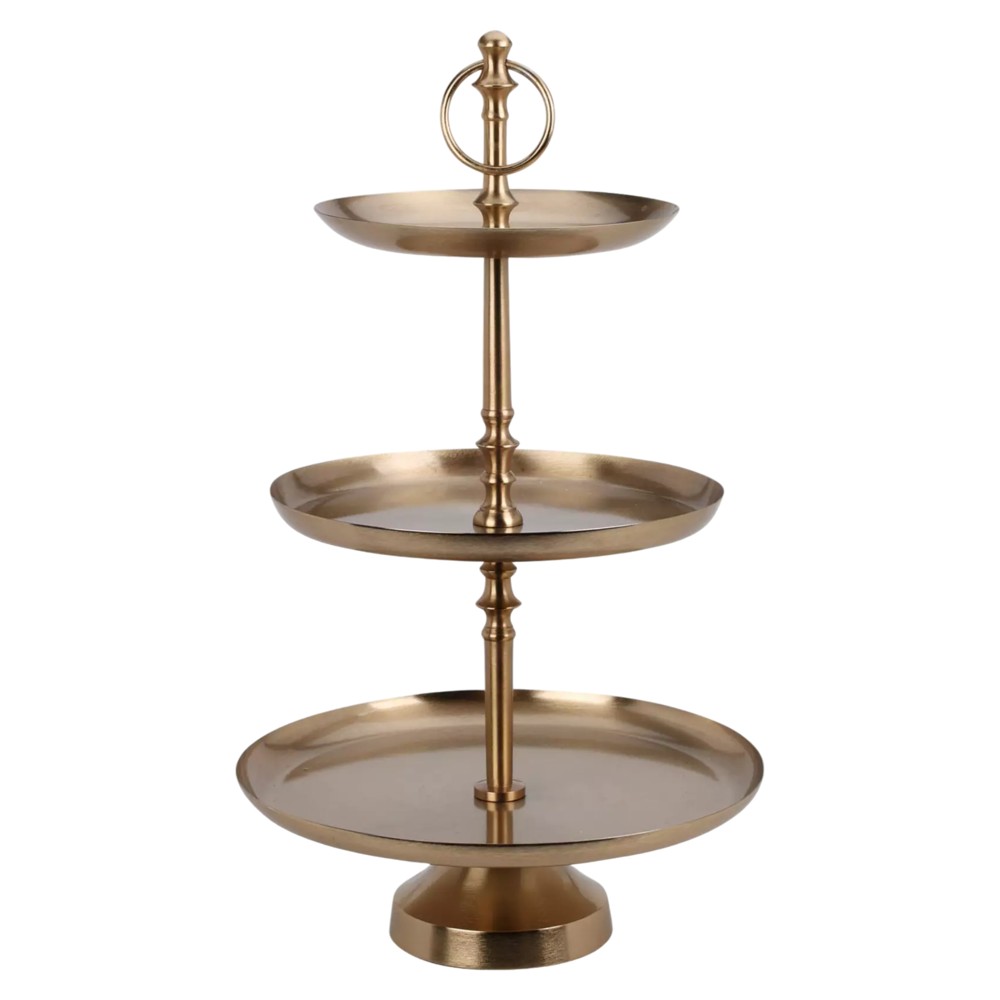 This metal serving console is the perfect blend of style and function. With three tiers, it offers ample space to display a variety of items, from desserts and drinks to decorative accents. The gold finish adds a touch of glamour and makes it a focal point in any room. Its compact size of 30x50 cm makes it perfect for smaller spaces.
