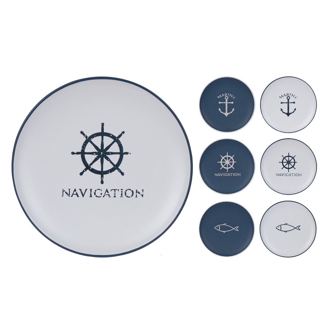 Serving plate which is combined with a number of plates from the collection of kitchen plates. Made of ceramic, the plate is very practical and elegant.