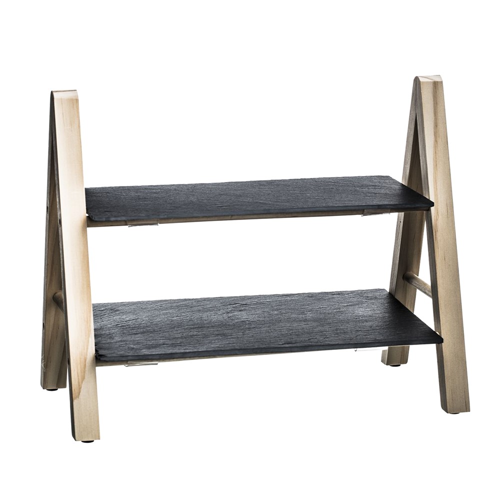 Beautiful 2-layer etagere made of wood and slate. Perfect for serving aperitifs for breakfast, lunch and dinner. With this you put a really nice accessory on the table and you can enjoy it with your guests.