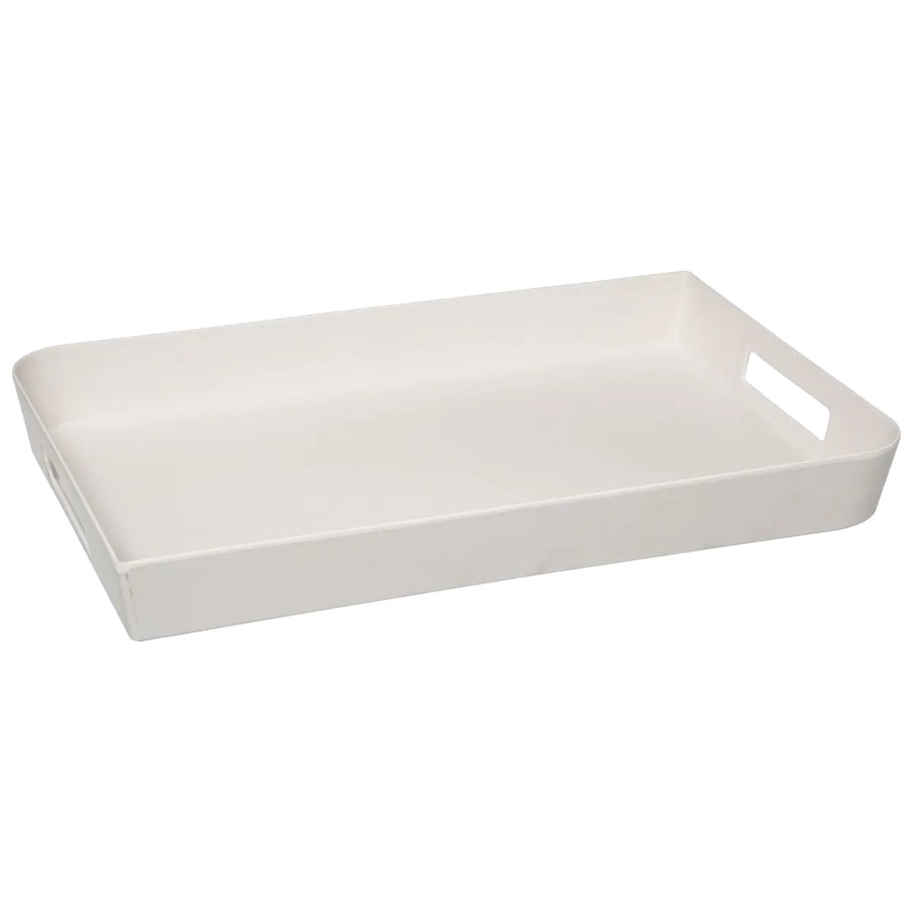 White tray made of quality melamine. Simple design with two handles, which are very practical in serving.