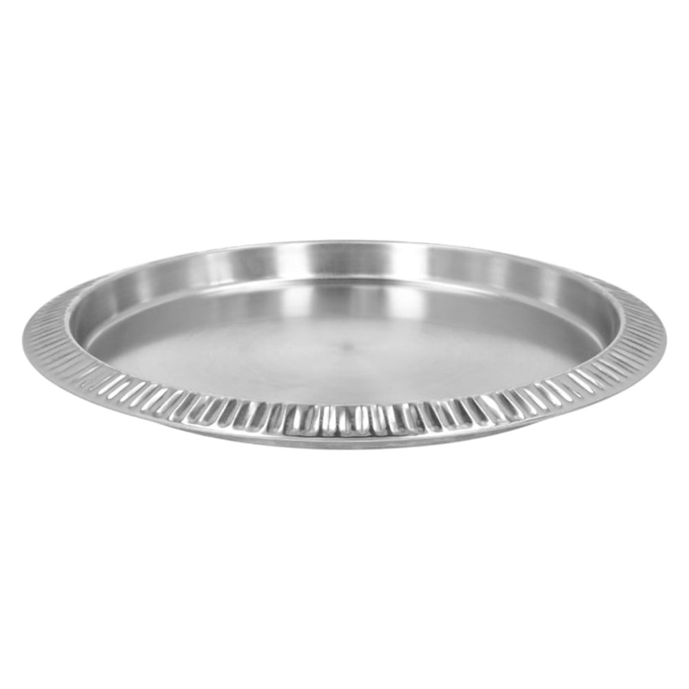 Serving tray made of stainless steel in silver color, measuring Dia. 35 x H 2.5 cm. This elegant and durable tray is perfect for serving drinks, appetizers, or desserts with style and convenience. The high-quality stainless steel construction ensures long-lasting use, resistance to rust, and easy cleaning. Its sleek silver finish adds a modern and professional touch to any table setting, making it ideal for both everyday use and special occasions.
