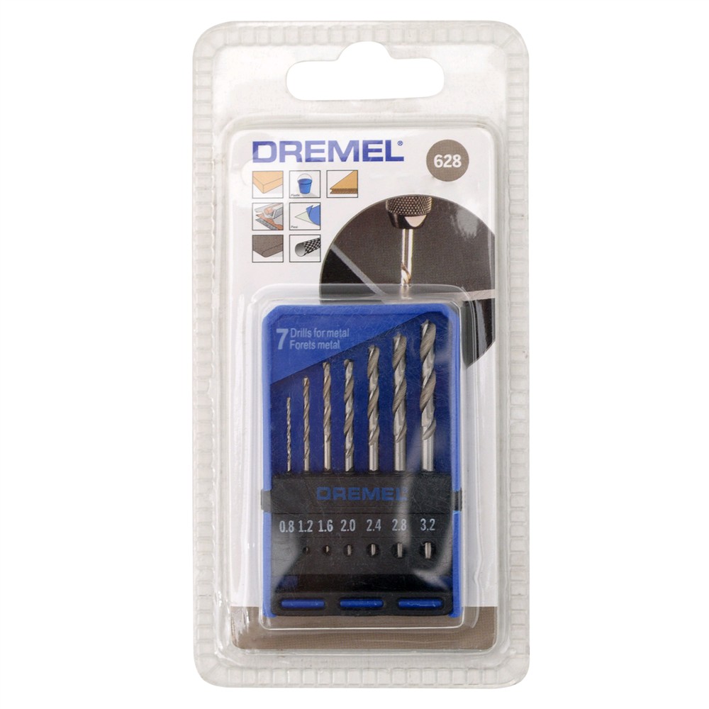 Precision Drill Bit Set 7 pcs.The Dremel precision drill bit set (628) contains 7 drill bits for drilling into wood or soft metal. The different diameters included are 0,8 / 1,2 / 1,6 / 2,0 / 2,4 / 2,8 and 3,2 mm. Requires the 4486 Dremel Multi Chucks.