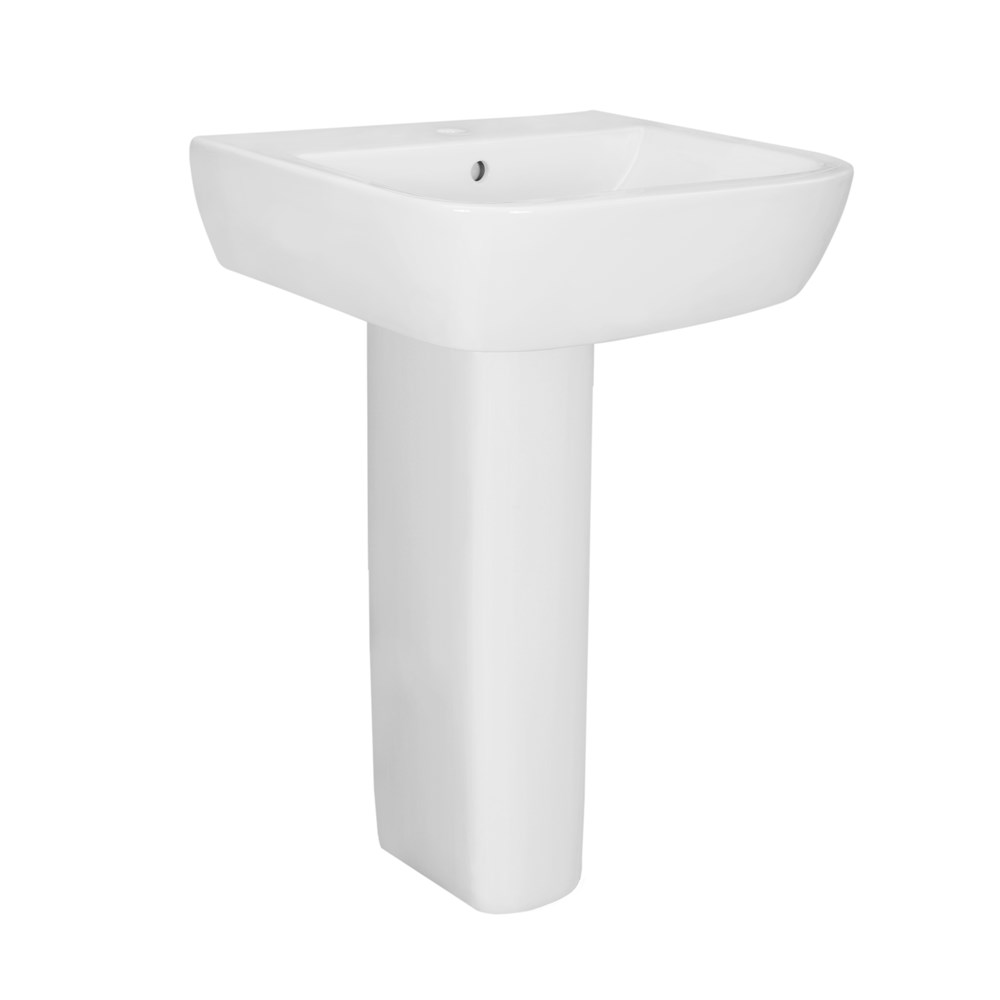 'Tempo'-Porcelain pedestal basin combines the best of traditional style and nice look that complements a range of bathroom styles. The high quality porcelain material provides durability and is easy to clean.This sink features pre-drilled holes for easy installation of a matching faucet .This product is a very nice addition to the bathroom.