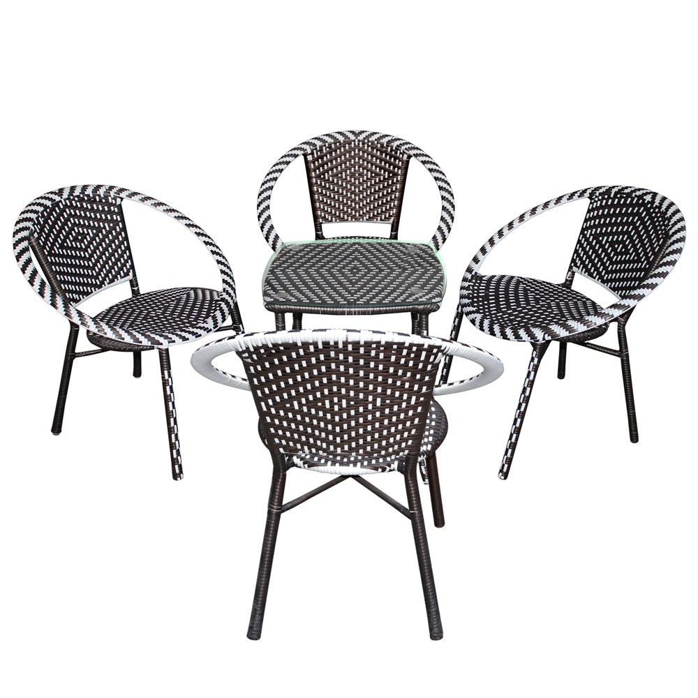 With an appropriate form in the design quite special and interesting lines, I'm very comfortable in use and fits very well in the premises of our houses porch or bars environments. Produced by Ratan PE material which is resistant to atmospheric agents, elegantly combining this set consists of (a table + glass + 4 chairs)