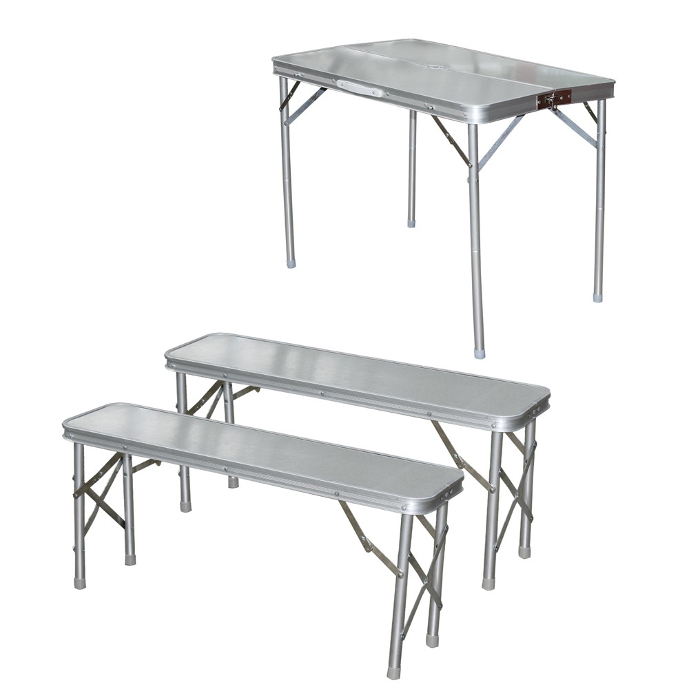 Set camping table, aluminium alloy, silver, 90x65x73 cm