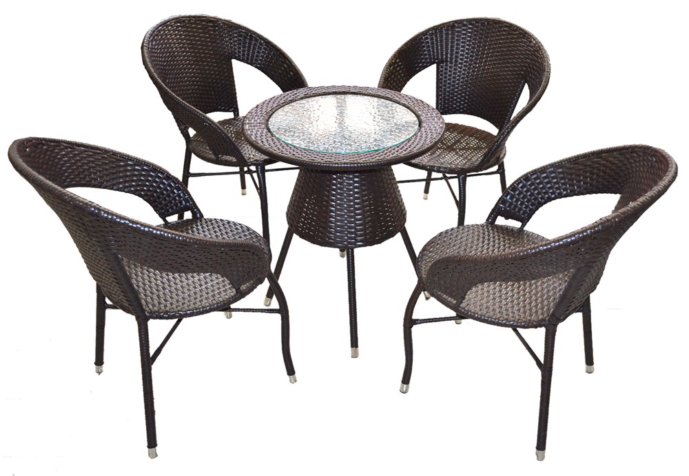 This set of black color, made of a glass table and four chairs +, with a very appropriate form in design being combined with classic lines and modern, fits very well everywhere. Produced by Ratan PE material quite resistant to atmospheric agents where the lines rattan areworked quite nicely, combined with enough elegance.