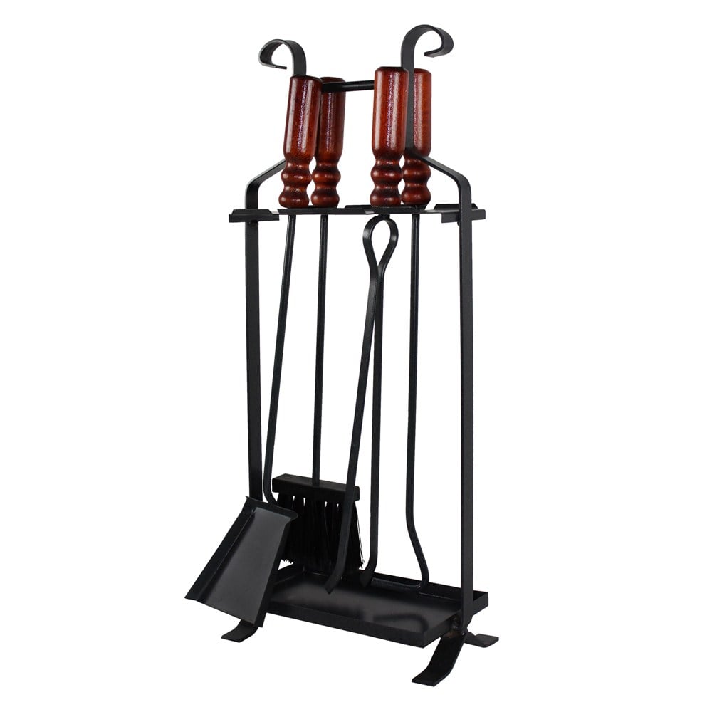 Give to your fireplace class and greatness completing it with necessary accessories! Set with 4 pieces of fireplace accessories: shovel, brush, poker and stand. Powder baking paint (black painted, wood handle) to resist against heat and mechanical strokes.
