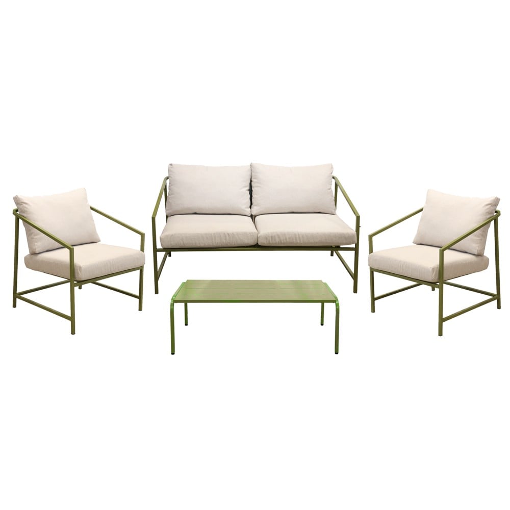You're reviewing:Set of 2 chairs + 1 armchair + 1 side table, metal, military green, chairs 64x64xH68 cm / armchair 132x64xH68 cm / table 100x50xH36 cm