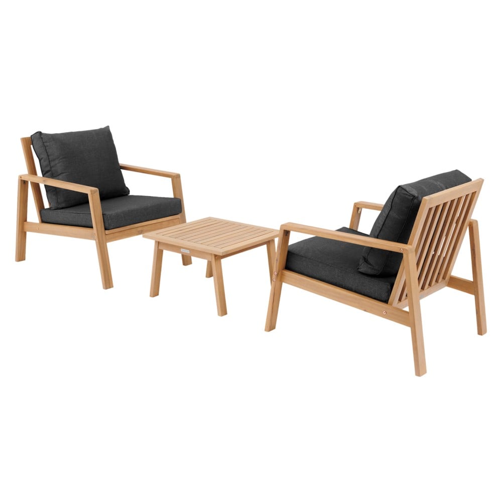 You're reviewing:Set of 2 chairs + 1 table, acacia wood, brown / black, chair 85x69xH76 cm / table 55x55xH35cm