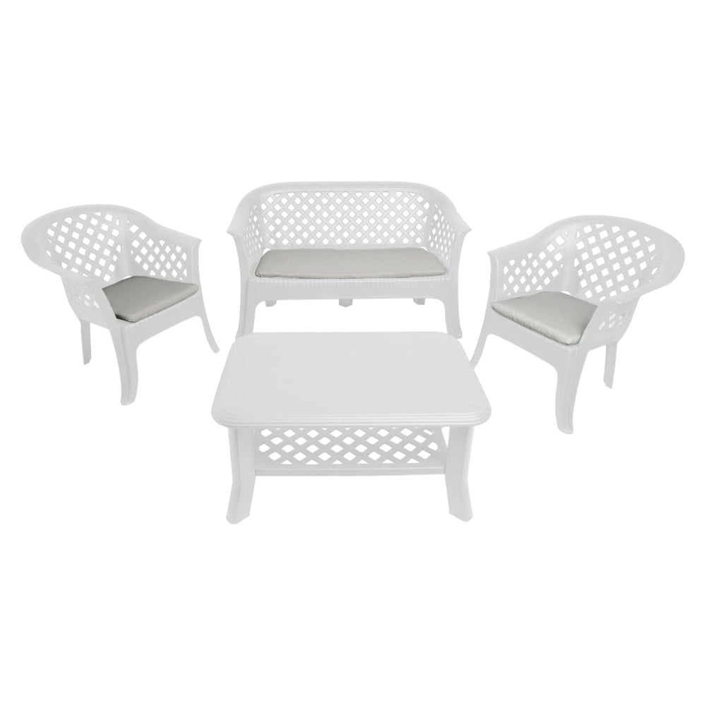 Set of 2 single armchairs + double armchairs + table, Veranda, PP, chair 72x72x76 cm, sofa 2 seater 134x72x76 cm, table 90x60x46 cm, white color_x000D_