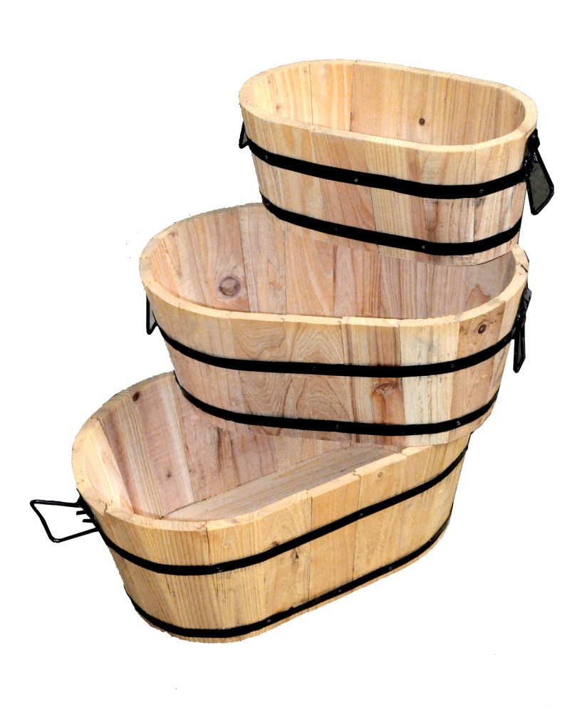 The wooden barrel flower pot is perfect for any decor, yard or garden. Constructed from 100% natural wood treated against moisture, insects and reinforced with metal rings, this vase is beautiful for many years to come. The stable construction and antique look make this vase without comparable. Give your garden simplicity and a dramatic look with Gardesign collection of products. Buy cheap, buy in set.
