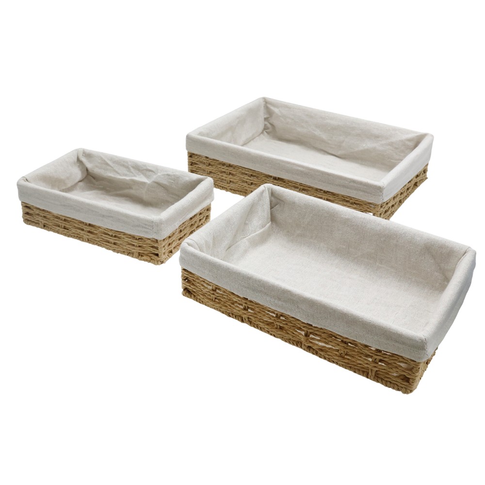 This beautiful set of 3 bread baskets combines functionality and style in a harmonious way. Each basket has a durable metal structure supported by straw and finished with natural cotton in white, creating an elegant and warm design. With dimensions of 35x25x9 cm, 30x20x8 cm and 27x17x7 cm, the baskets offer different spaces to store bread, baguettes or other similar products in an orderly and accessible way. This set brings a natural and modern touch to the table, making bread organization not only practical, but also a decorative element that enriches any kitchen or dining area.