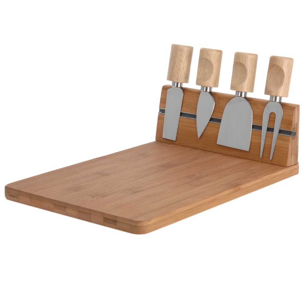 Set of knives and cheese cutting board (PK 5), bamboo, brown, 5x20x30 cm