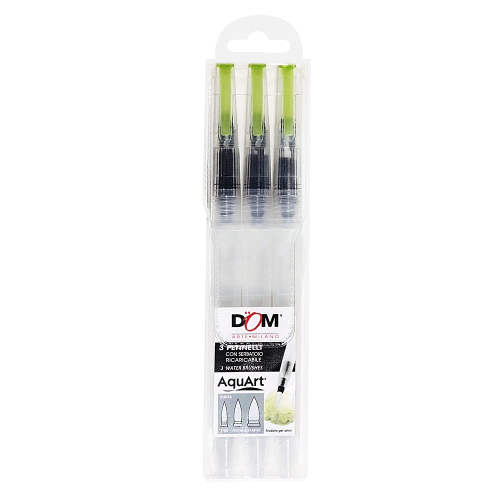 Brushes with bristles and refillable tank. It can be filled with water or ink for multiple uses: manga, graphics, comics and watercolor. Assorted tips: fine - medium - large.