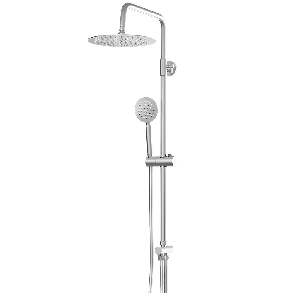Experience comfort and elegance with the "Poseidon Satin" shower set, an ideal choice for modern bathrooms that value both functionality and style. This set includes the shower rail, flexible hose, a hand shower with one function, and a fixed shower head. The hand shower is made of high quality stainless steel with a 10 cm diameter. The fixed shower head, also made of stainless steel, features a sleek ultra thin design with a 25 cm diameter, adding a touch of elegance. It is also very easy to clean, thanks to the soft silicone spots that prevent limescale buildup. The shower rail, with an adjustable length ranging from 83 to 118 cm, is made of steel with a matte finish, giving it a refined appearance. The 150 cm flexible hose is made of PVC, making it anti-twist and offering excellent resistance to heat and other forms of damage. This shower set is the perfect choice for those seeking an exceptional blend of functionality, durability, and sophisticated style, turning every shower into a relaxing and luxurious experience.