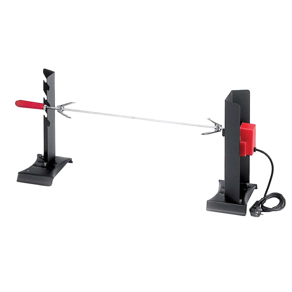 Set of skewers for baking, equipped with 2 side supports made of metal material for holding the skewers during baking. Set includes side supports 2 pieces, skewer rod 70 cm, electric motor, side meat clamps. Suitable for roasting, chicken, poultry, etc.