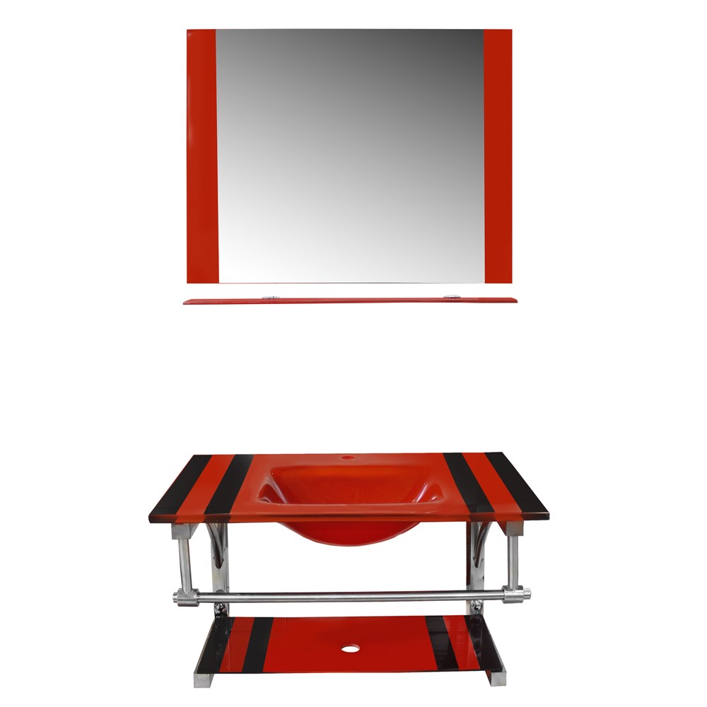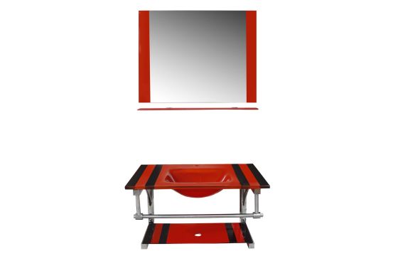 The “Rosso Nero” complete set presents an elegant design that will rejuvenate your bathroom. The collection’s material is glass which offers stylish design, easy to clean and durable surfaces for long-lasting beauty for medium spaces of your bathroom.The red glass and the metalic frame are modern combination which fit well with different monochrome tiles like white,grey,black etc. This is a collection that includes: basin and mirror. All of the components are pre-assembled and ready-to-install in a quick and easy way. With “Rosso Nero” set you can remodel your bathroom anytime your space needs even more storage. The complete bathroom makeover with “Rosso Nero” brings innovation and fun in your home.