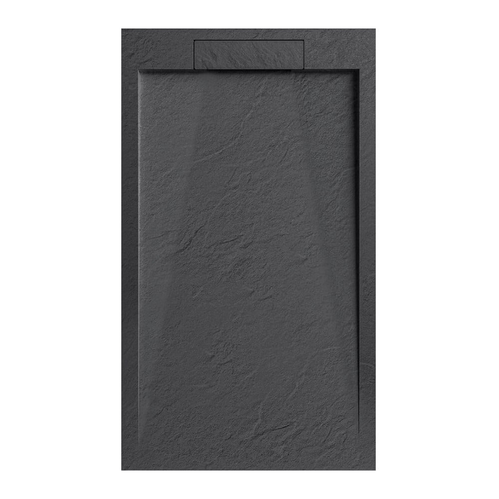Set shower tile+ drainer, resin, stone effect, dark grey, 120x80xH2.5 cm