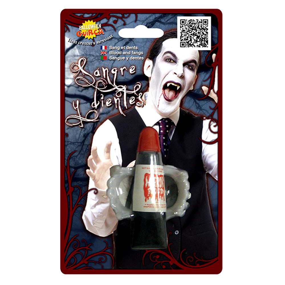 Vampire tooth set with blood tube. Suitable for vampire clothing.