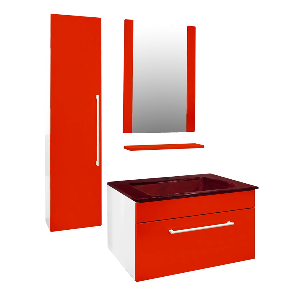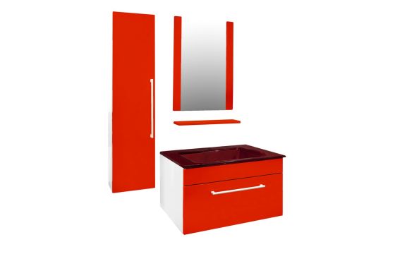 "Vittoria"-complete set of bathroom furniture presents a stylish model design that will rejuvenate your bathroom. The porcelain basin offers a stylish decor with ease of cleaning ,to provide a beautiful and very modern interior design for medium spaces of your bathroom.Constituent materials, MDF & porcelain are modern materials resistant to moisture. Cherry color of the cupboard fits very well in modern tiled bathrooms with colors like white, gray, black, etc..