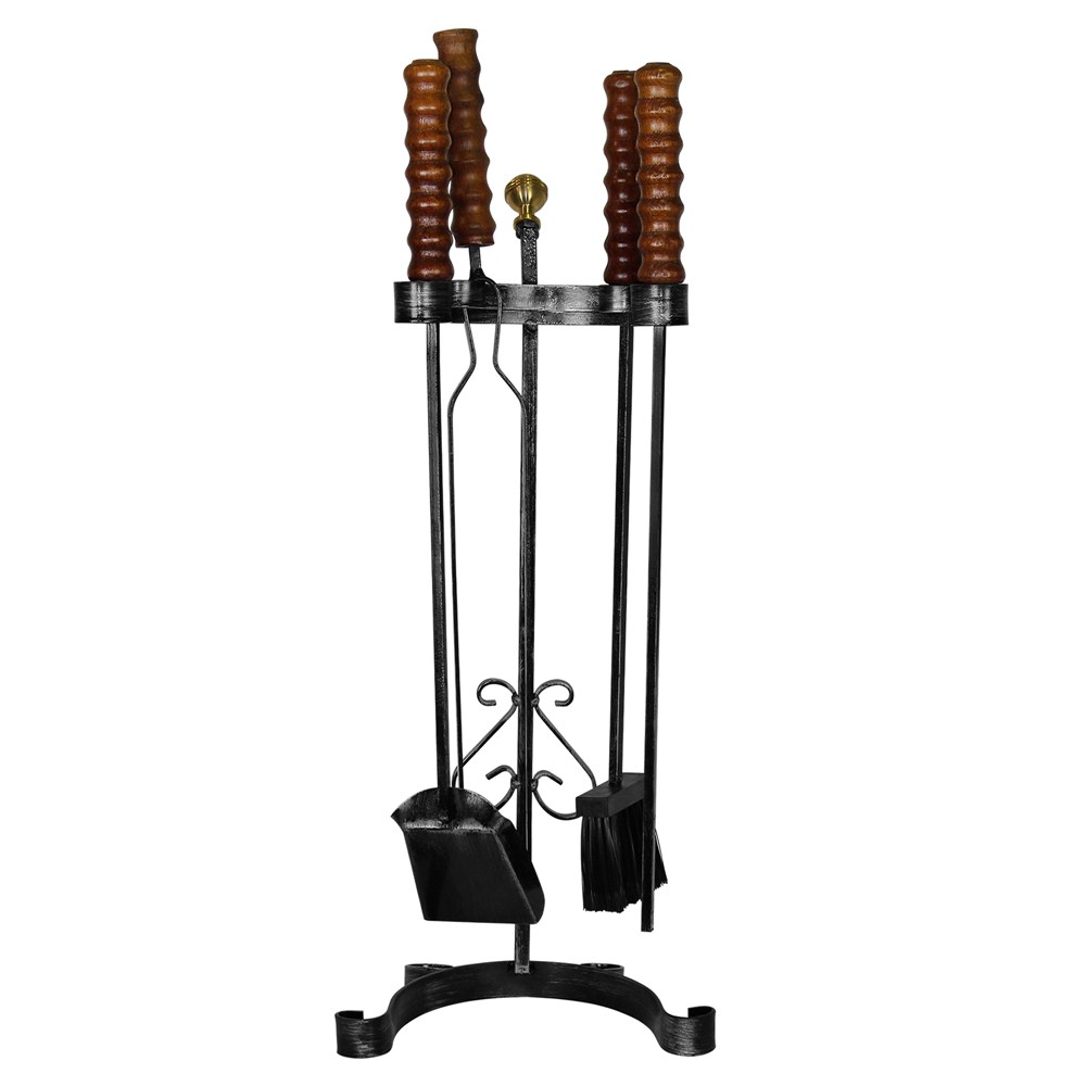 Give to your fireplace class and greatness completing it with necessary accessories! Set with 4 pieces of fireplace accessories: shovel, brush, poker and stand. Powder baking paint (antique) to resist against heat and mechanical strokes.