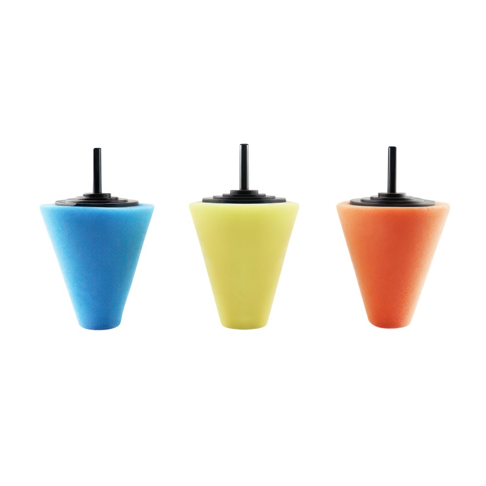 Measures approximately 12 x 8 x 8cm Professional foam polishing system Convenient to use with power drill and polish wheel Used for coat paint's waxing, polishing and sealing glaze to improve car lightness Soft sponge for with different color car detail polishing(rough and small areas) Unique cone-shape great for wheels, fenders and other hard-to-reach spots