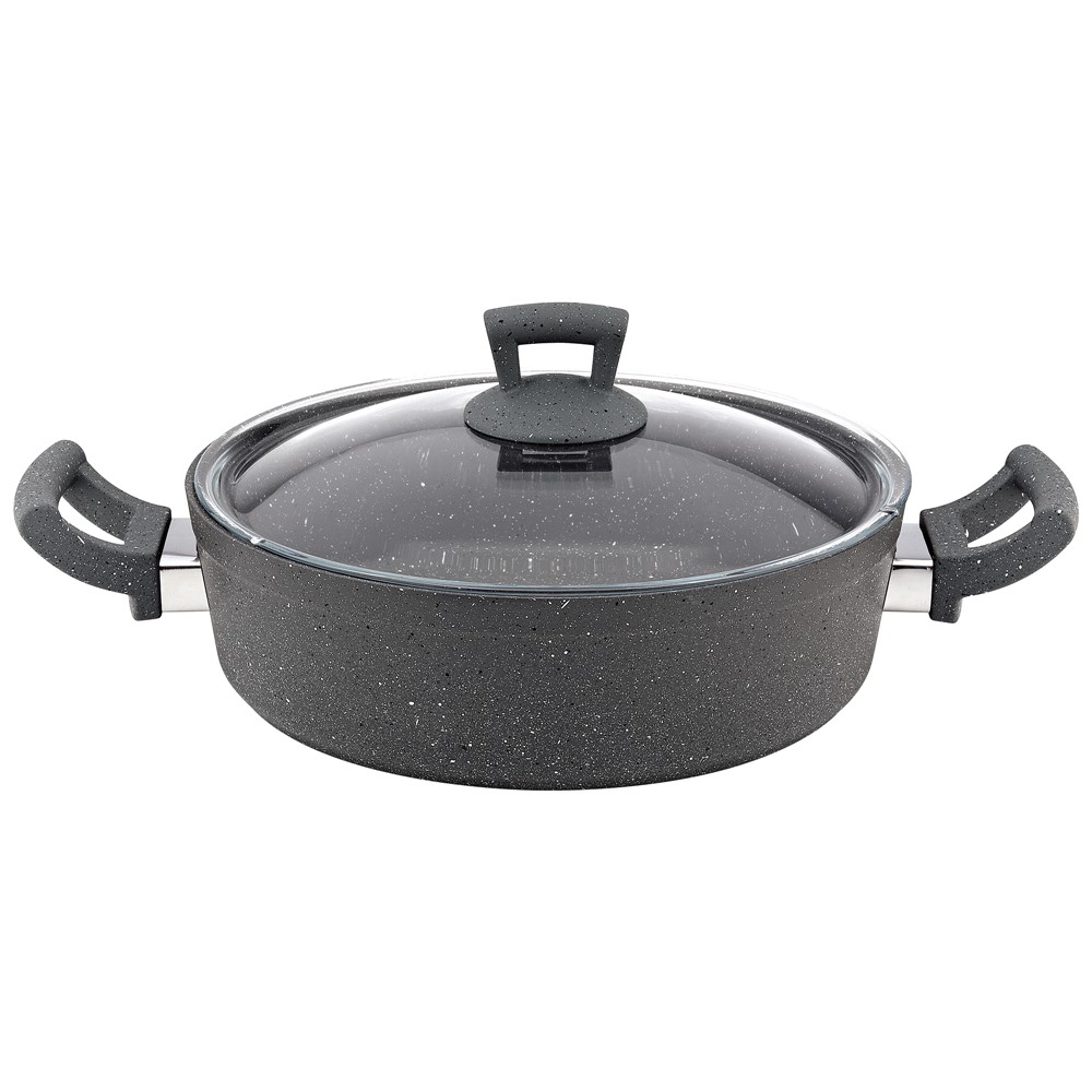 Shallow induction granite pot with lid Germanitium, aluminum, gray, Dia.28x8.0cm / 4.3 Lt