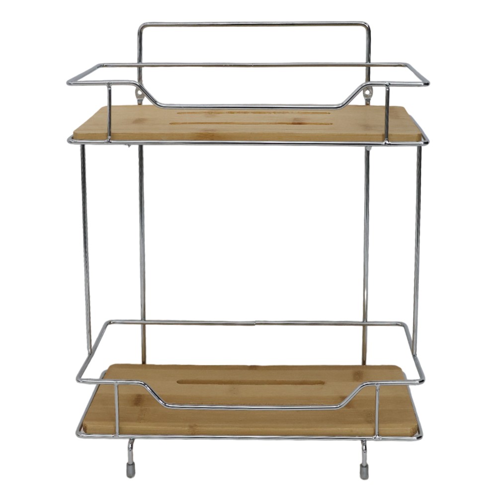 Shampoo holder, 2 levels, rectangular, metal/bamboo, silver/bamboo, 28x15.5xH34.5 cm
