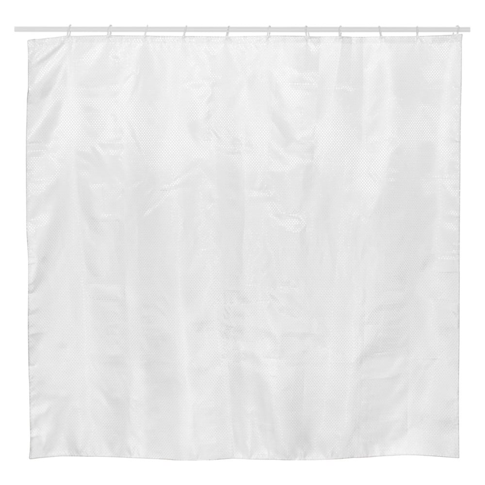 Shower curtain produced by YM in white polyester material. Thanks to its material, this curtain does not allow water to penetrate. Design with shiny triangles and monochrome colors makes it possible for this curtain to be easily combined with all types of furnishings. Retaining rings (12 pieces) are included in the package for a complete assembly set. Dimensions, height 180 cm x width 180 cm.