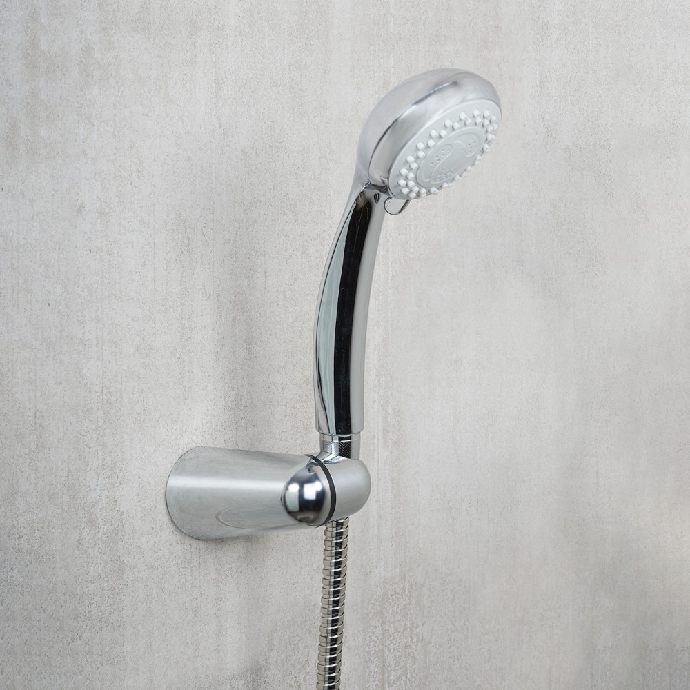 The "Aurora" shower set contains the essence of the delicately curved shape and clean lines that give you a relaxing shower experience. This set contains the shower head and holder. The chrome-plated component material offers high resistance to chemicals and excellent insulating properties. This shower set has a simple installation system and is easy to assemble. Add a practical and quality product to your bathroom!
