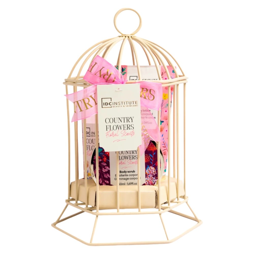 Shower set, IDC Institute, Country Flowers, 100 ml shower gel, 90 ml body lotion, 50 ml body scrub, 1 pack