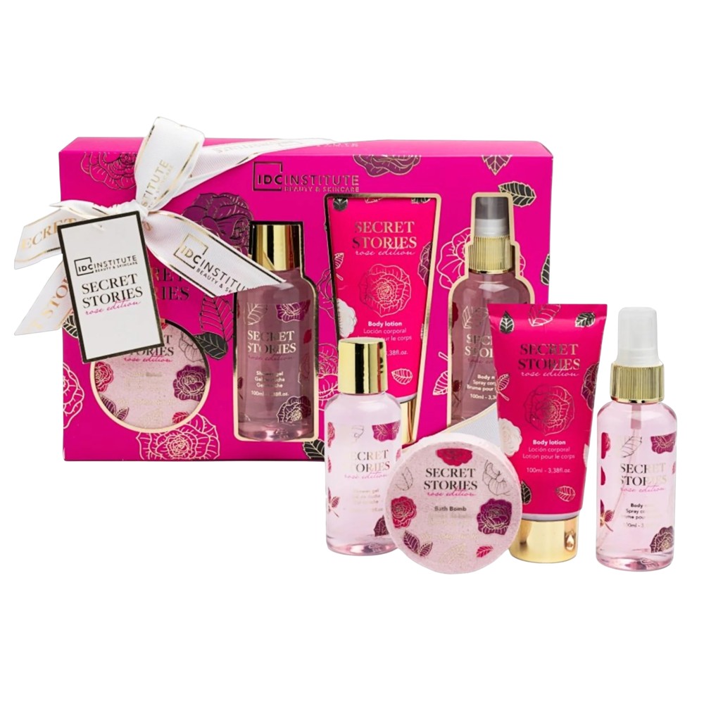 Shower set, IDC Institute, Secret Stories, Shower gel 100 ml, Body spray 100 ml, Body lotion 100 ml, Bath bomb 40 gr, 1 piece