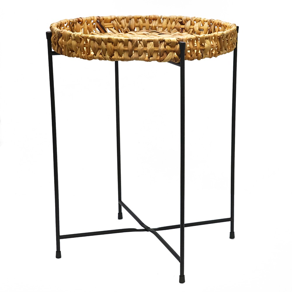 Side table, metal, black/natural, Ø38xH48 cm