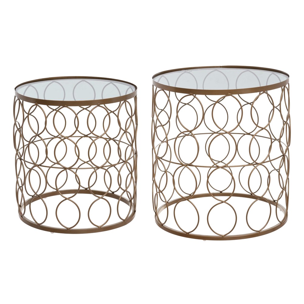 Side table, set of 2 pcs, metal/tempered glass, golden mat,