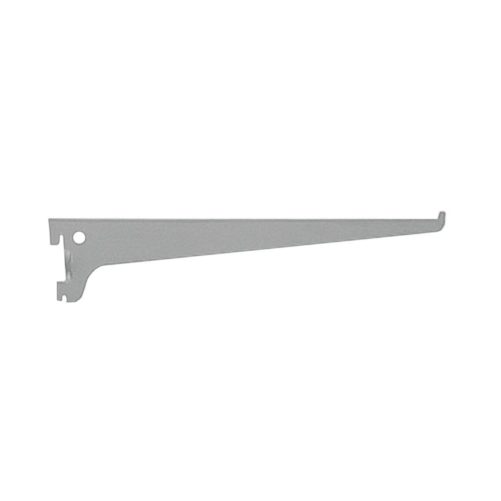 Single shelf bracket, made of metallic material, in grey color, which is suitable for single-slotted shelving systems. The constituent material is resistant to use, heavy weights, rust or abrasion. This product is suitable for use in the construction of LSS (Long Span Storage) shelving structures that are placed in toilets, hotel laundries, basements of houses, offices or various workshops, to help in organizing the limited spaces.
