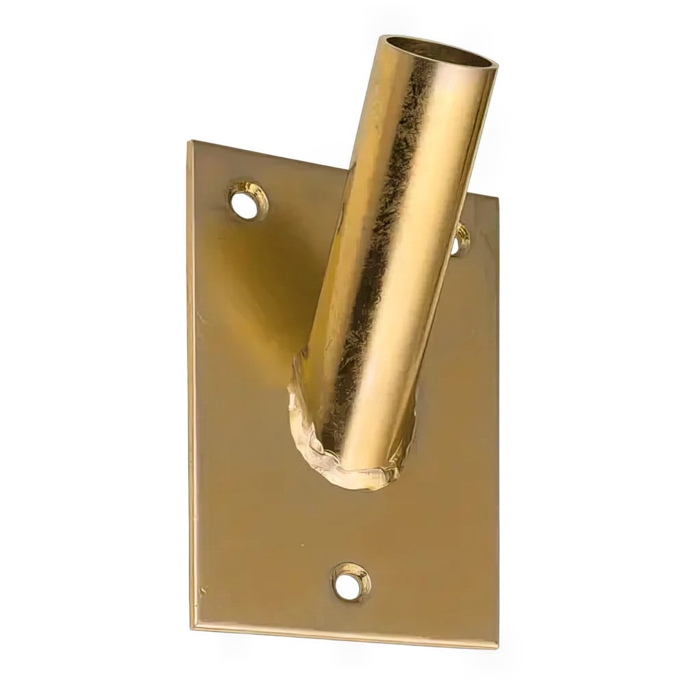 Flag holder, made of metal, measuring 70x110x26 mm, in yellow. It is used to place flags in institutions or your private premises, ensuring a stable installation on wood or concrete. The component material is resistant to use, heavy weights, rust or corrosion. It can be easily installed using screws.