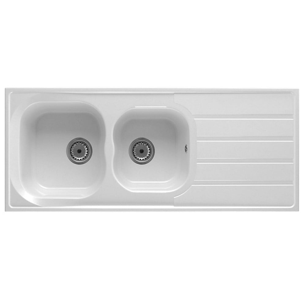 Sink, 2 bowls, left / right, DAKOTA, white, 116x50xH18 cm