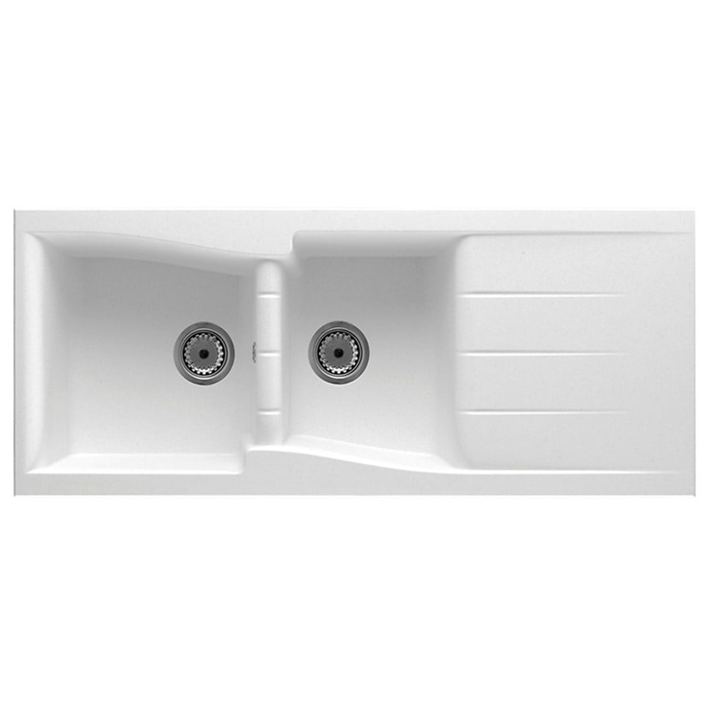 Sink, 2 bowls, left / right, LUNA, white, 116x50xH21 cm