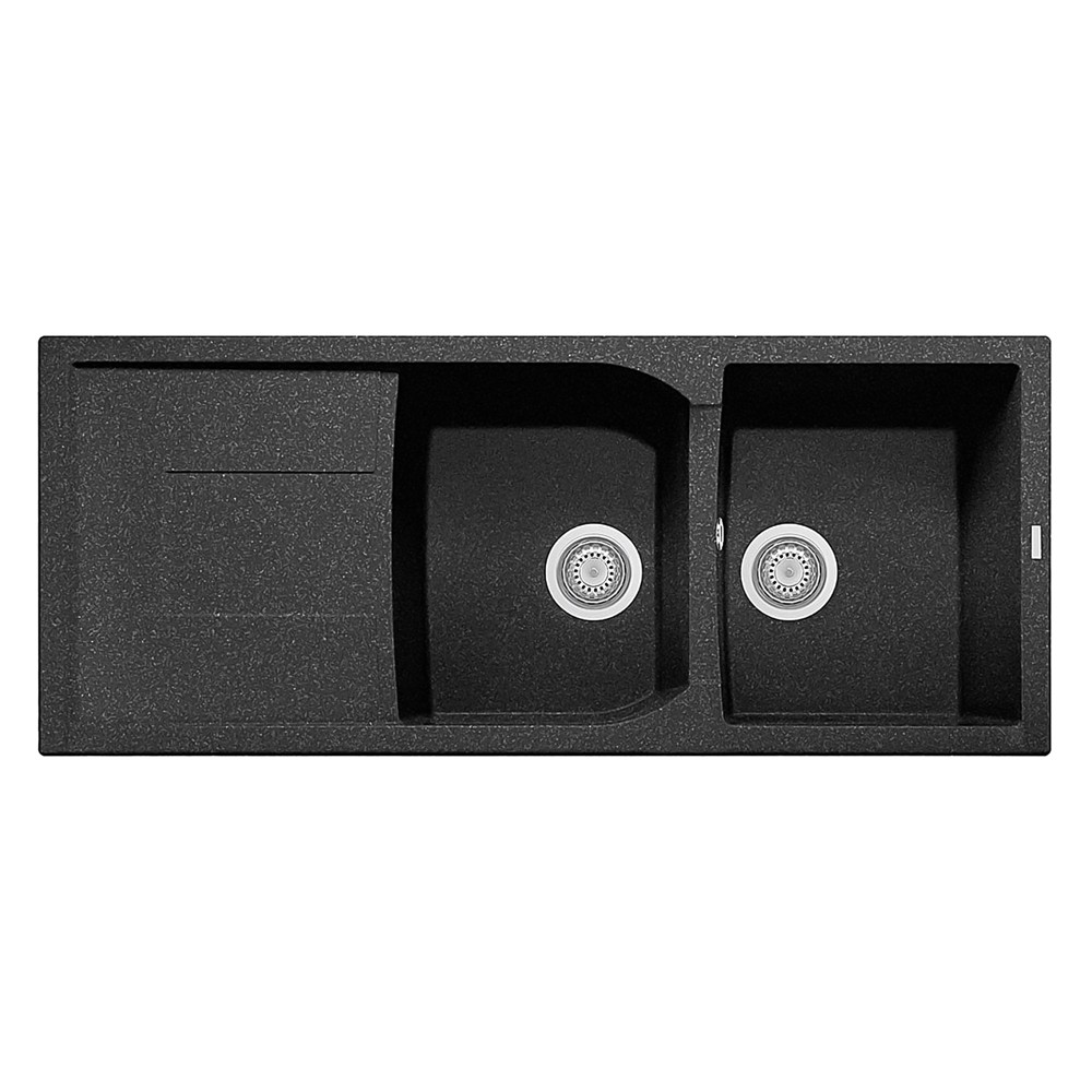 Sink, 2 bowls, right, PLADOS, granite, black, 116x50xH20 cm