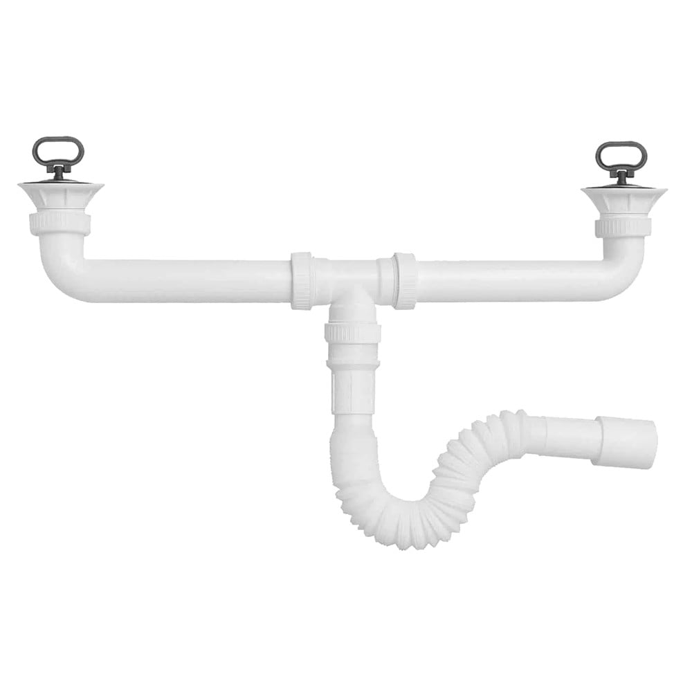 You're reviewing:Sink siphon set, with 2 drains, + flexible pipe and 2 stoppers, polypropylene, white, ø80, 1/1/2''x32-40 mm