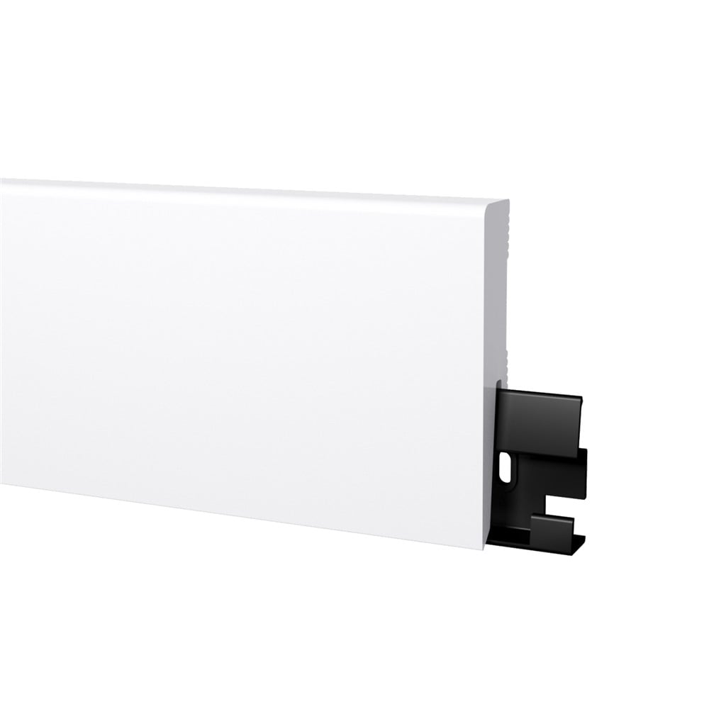 DORA belongs to a rigid core skirting boards family. It is available in 4 heights allowing for adequate choice depending on room height. Made entirely from non PVC material. Its surface provides not only impact resistance, dust and dirt protection but crucially waterproofness. With combination of those technical features this skirting board will look like a new for a long time. DORA can be installed with dedicated clips or with glue. It allows to cover up to 20 mm dilatation gaps and can be fitted with laminate, wooden and vinyl flooring. Using DORA, you can also neatly mask TV cables.