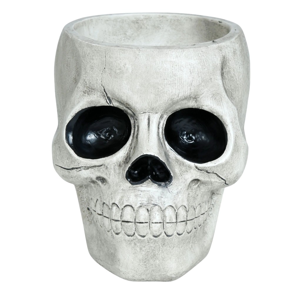 This skull-shaped glass is a great Halloween accessory, bringing a spooky atmosphere to this party. With dimensions of 15x12 cm, it is made of resistant materials and has an attractive design in white and black. Perfect to serve different drinks or as a unique decoration on your table.