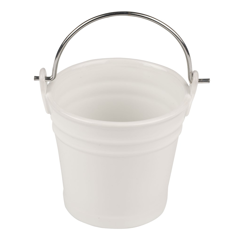 Mini porcelain bucket and metal handle where you can serve chips by making your table elegant.