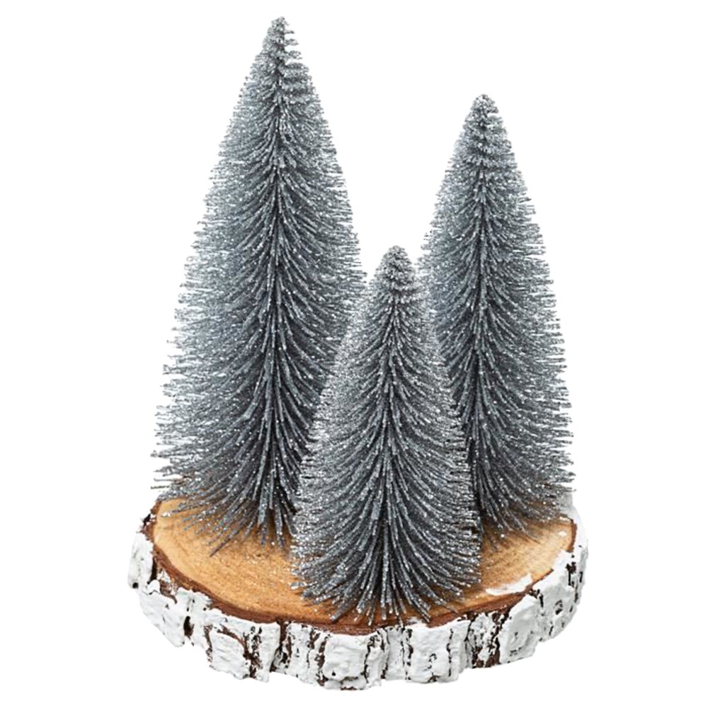 Table decorative ornament, made of polyethylene material, with a branch-shaped base and with three small fir trees attached to it, with dimensions of 20x22 cm, in green and brown color. It can be used to decorate table surfaces, in various interior environments during the Christmas and New Year holidays. This product is suitable for non-professional use, in home environments, and for professional use, by event organizing companies.