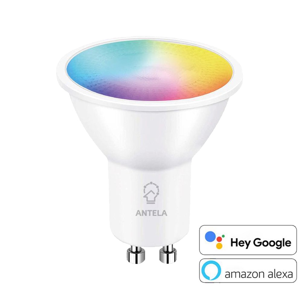 "Antela RGB Led Smart" intelligent lamp, GU10, 5 W, 350 Lm. Intelligent lamps, ANTELA are lamps that offer more than lighting. This lamp is controlled over long distances by connecting it very simply to WiFi.You need just a "click" to control it from the phone via voice control with Alexa or Googe. Are you tired of unadjustable lighting .Antela enables you 3 colors of light, 2700K-4000K-6500K + colors as well as brightness force between 10% - 100%. Illuminate smart with Antela