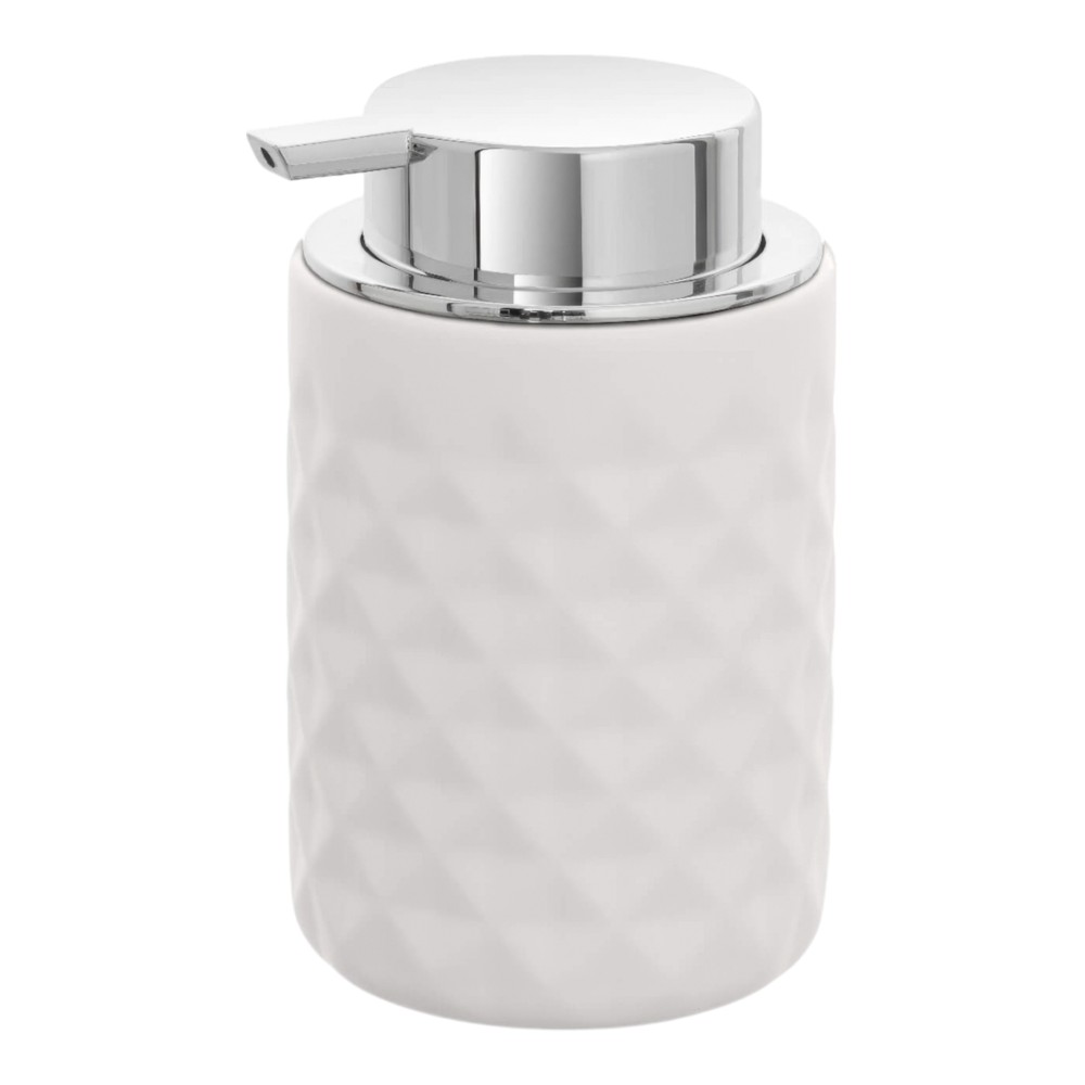 The "Texas" soap dispenser produced by the well-known FERIDRAS brand in high quality ceramics in white color fits easily with all types of furnishings. This accessory rests on the furniture eliminating the need for modifications to the toilet tiles. Complete the accessory set with the "Texas" line. Dimensions, height : 14 cm, diameter : 8 cm. Capacity : 400 ml.