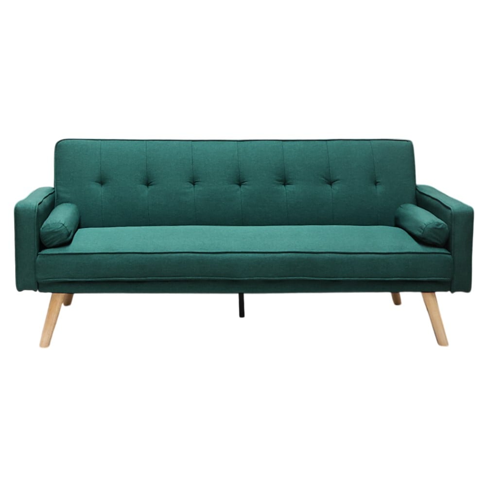 This sofa is a practical necessity for your homes and environments. Elegant and with a composition of very high-quality materials, this sofa is an option that will make your work easier. With the "click clack" system, it turns into a very comfortable bed. You will not need to buy two products, as with your choice you will have both in a single product. Perfect for hosting your guests or even relaxing. The fabric and green color make it a luxurious piece of furniture. The dimensions of the sofa are 178x75/92xH73 cm.